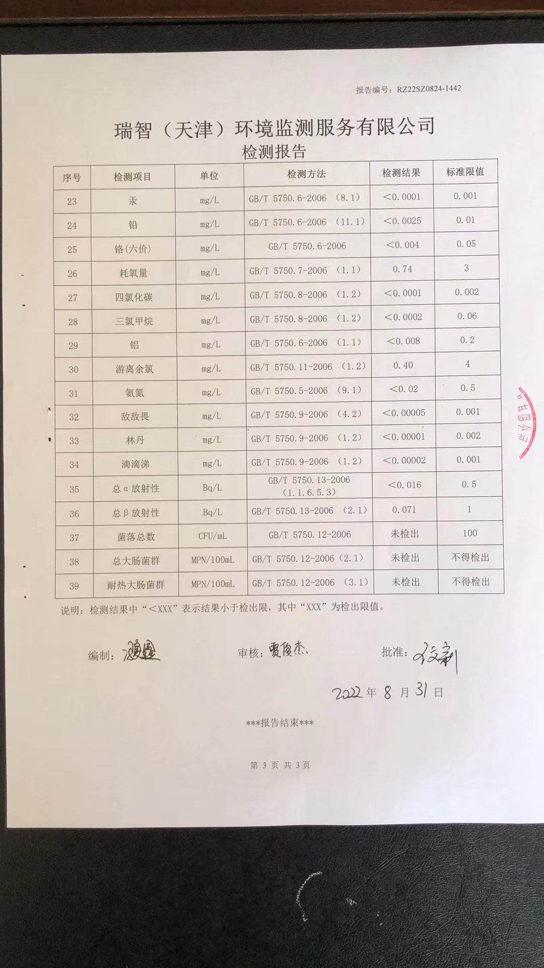 八月份檢測報(bào)告