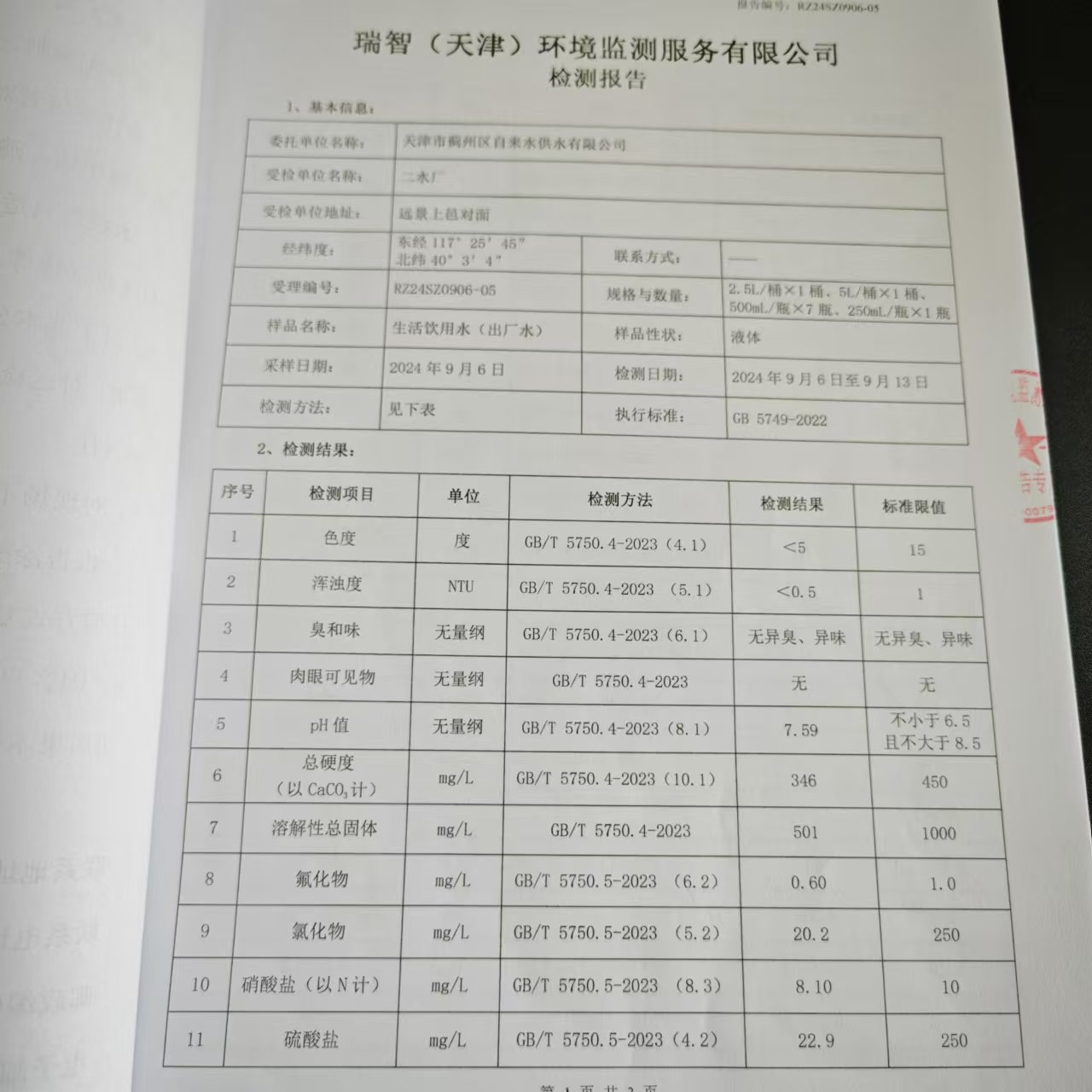 2024年9月份水質(zhì)檢測(cè)報(bào)告