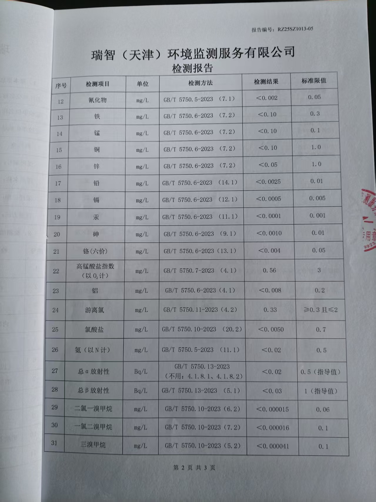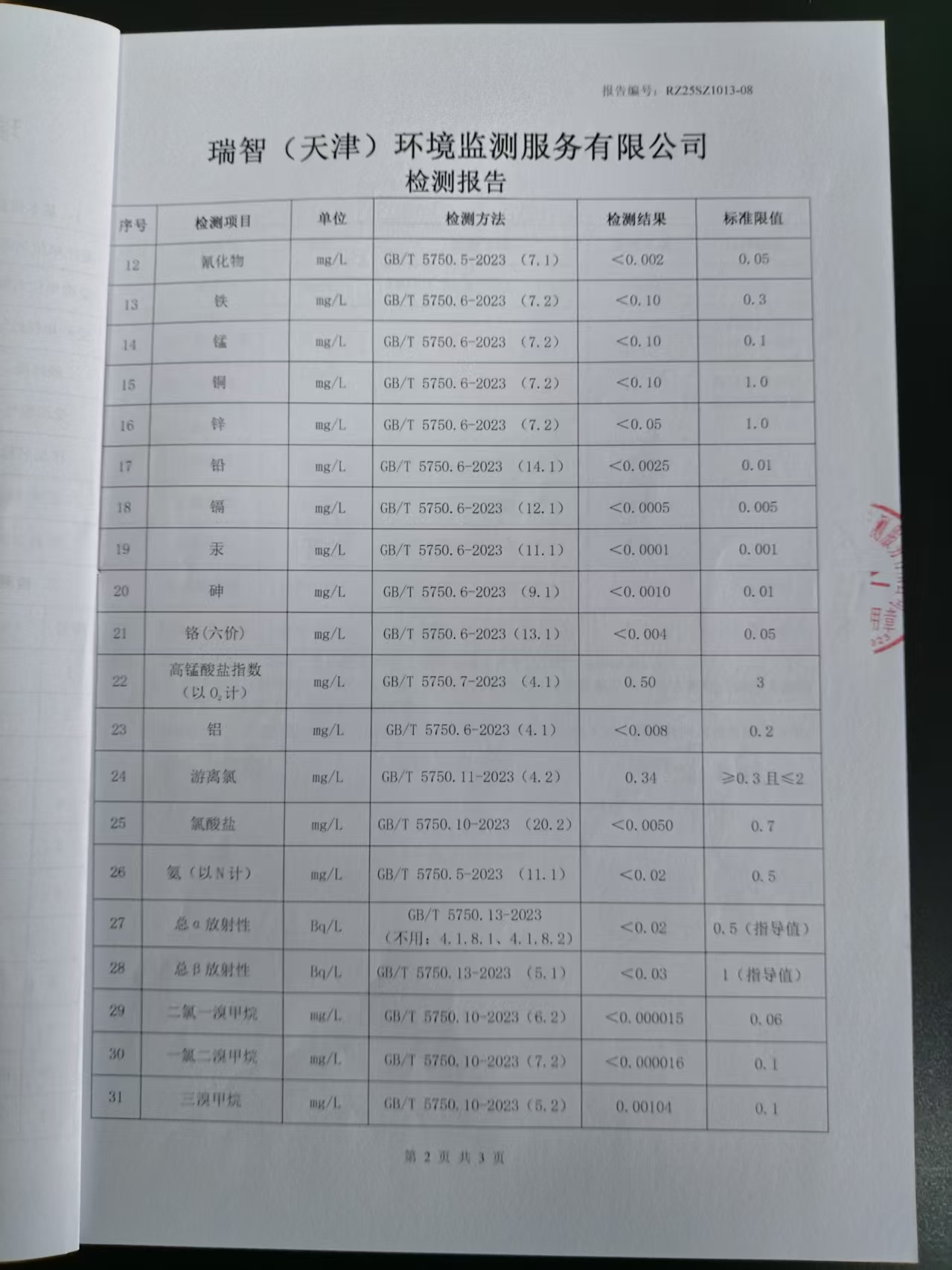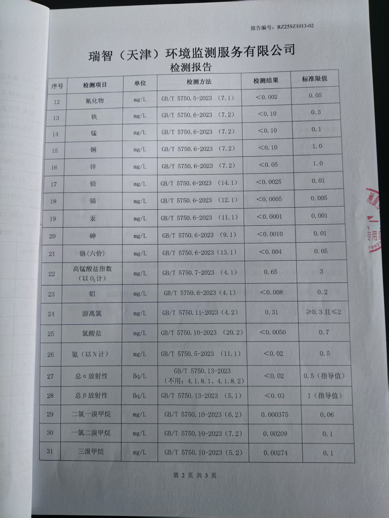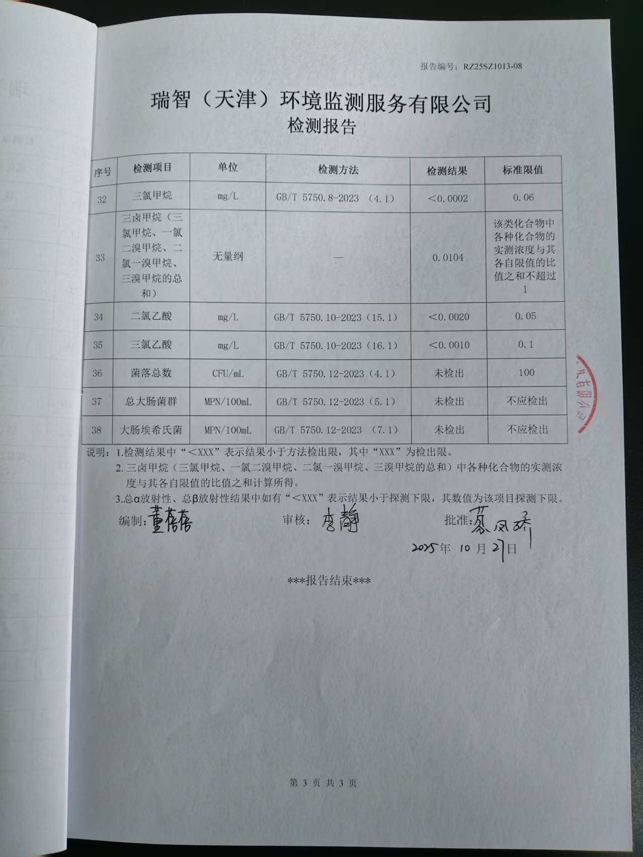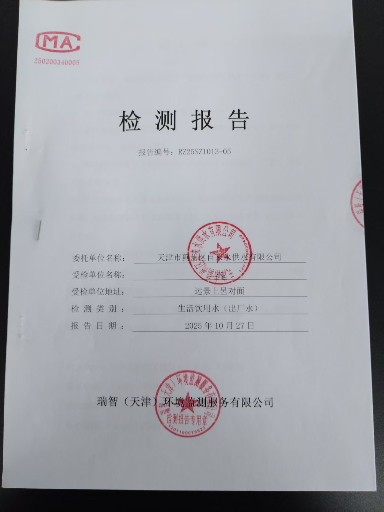 2025年10月份水質檢測報告