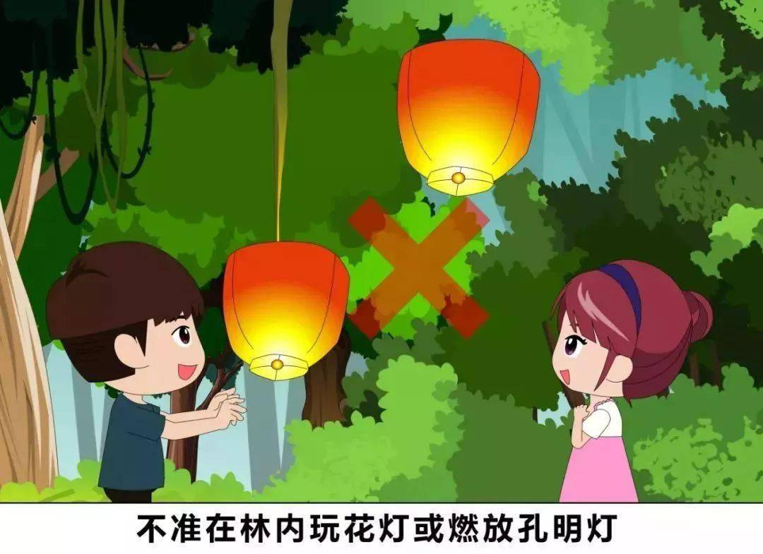 不準在林區(qū)里玩花燈或者燃放孔明燈,孔明燈雖然可以飛得很高很高,但是也很容易被林內的樹枝攔下,從而引發(fā)可怕的森林大火!