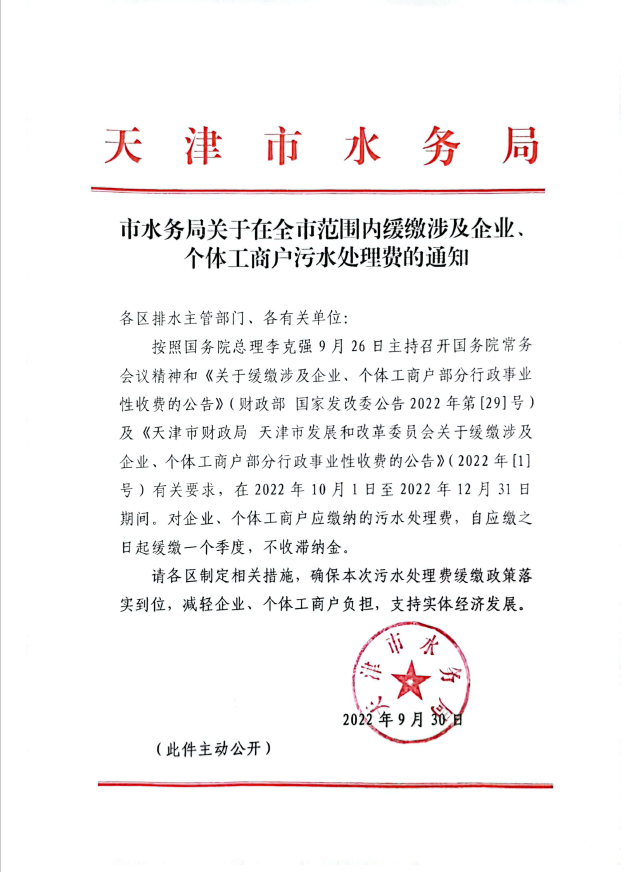 緩繳污水處理費(fèi)通知