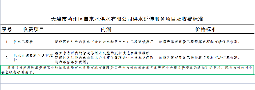 供水延伸服務(wù)項(xiàng)目及收費(fèi)標(biāo)準(zhǔn)