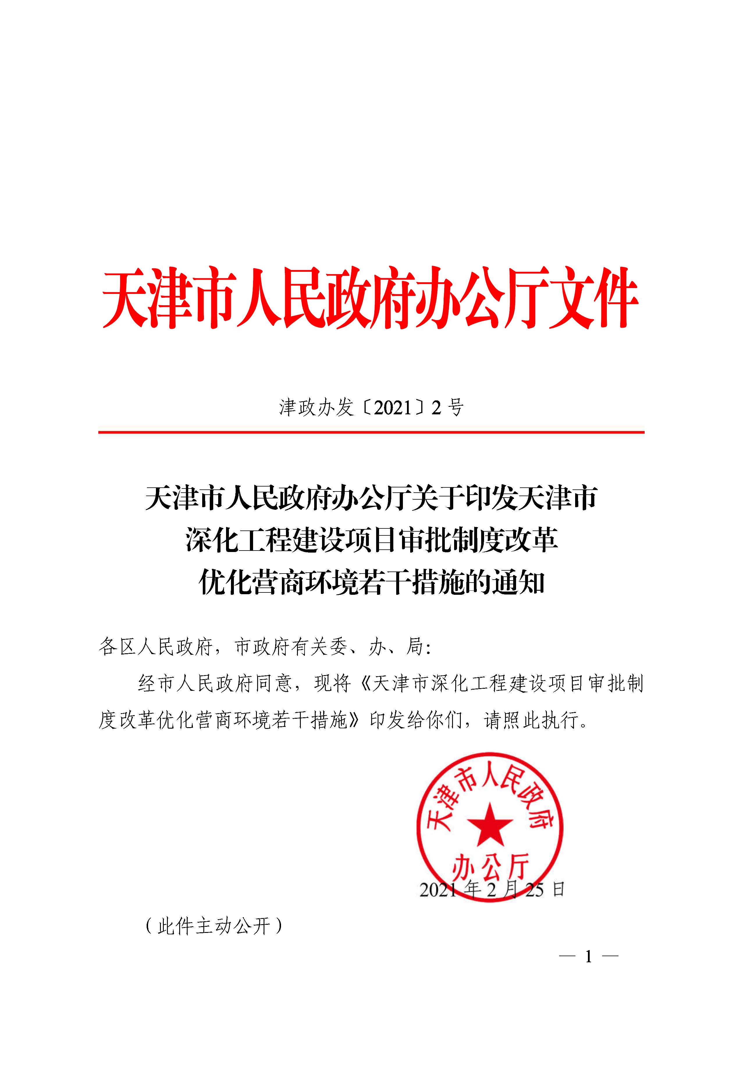 天津市優(yōu)化營商環(huán)境若干措施的通知