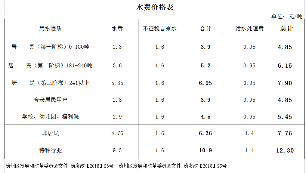 薊州城區(qū)水費(fèi)標(biāo)準(zhǔn)